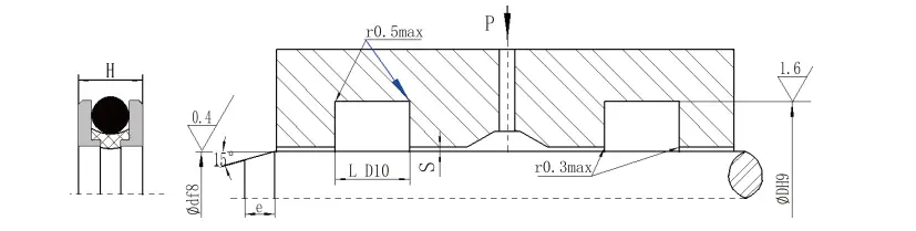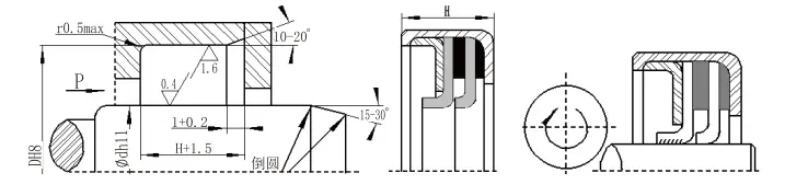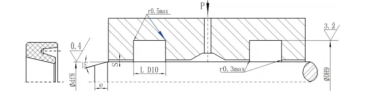 2. Для тиску> 30 МПа область кореня ущільнення використовує толерантність H8/F8.
