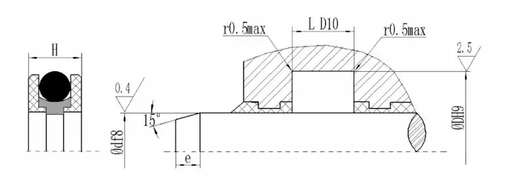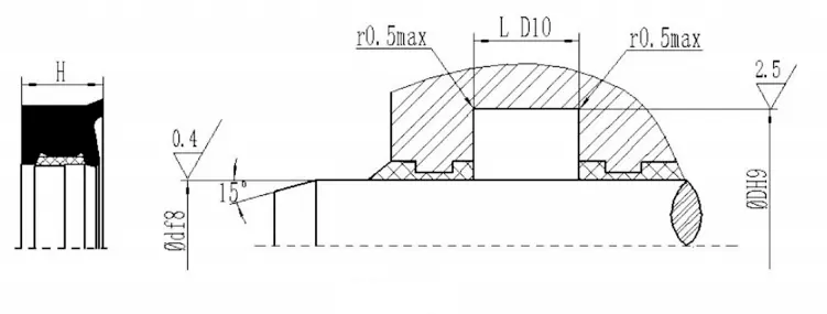 | Діаметр стрижня DF8 | Зовнішній діаметр канавки DH9 | Ширина слота L D10 | Висота ущільнення H |