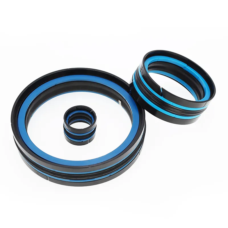 Складне ущільнення KDAS — це п’ятикомпонентне поршневе ущільнення компресійного типу, що складається з гумового ущільнювального елемента, двох стопорних кілець і двох напрямних кілець. Він підходить для двонаправленого ущільнення поршня під тиском.