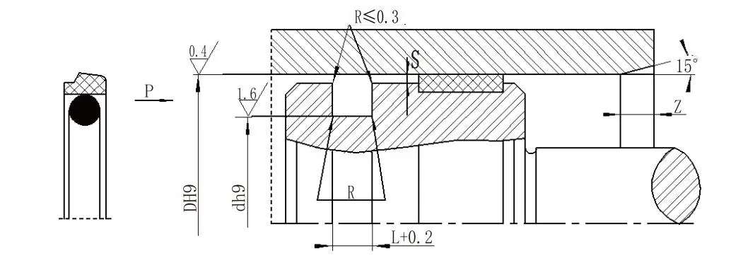 Поршневе ступінчасте ущільнення поршня складається зі ступінчастого ущільнювального кільця, наповненого PTFE, і ущільнювального кільця, що підходить для односпрямованого ущільнення під тиском у поршневих гідравлічних системах. Ущільнювальне кільце створює радіальну силу і компенсує знос ущільнювального кільця. Зазвичай він використовується в поєднанні з направляючим кільцем. Для циліндрів діаметром менше 30 мм слід використовувати конструкцію з розділеними (відкритими) пазами.